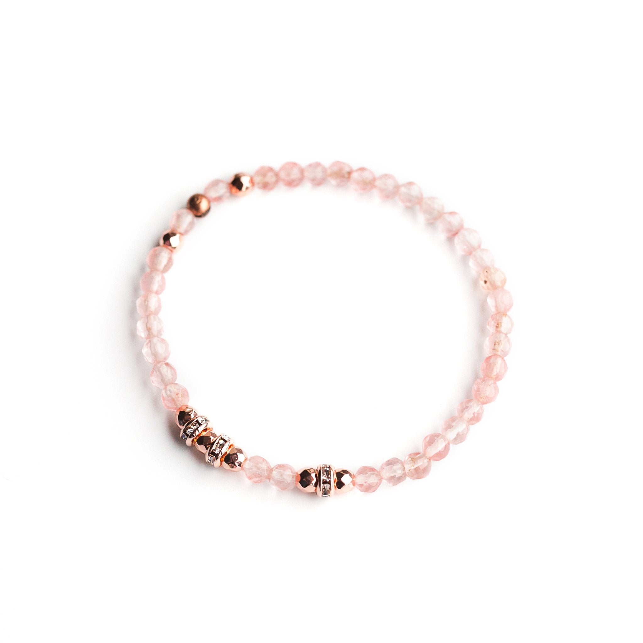 Bracelet en pierres semi-précieuses de cherry quartz et de quartz rose 4mm facetté.
