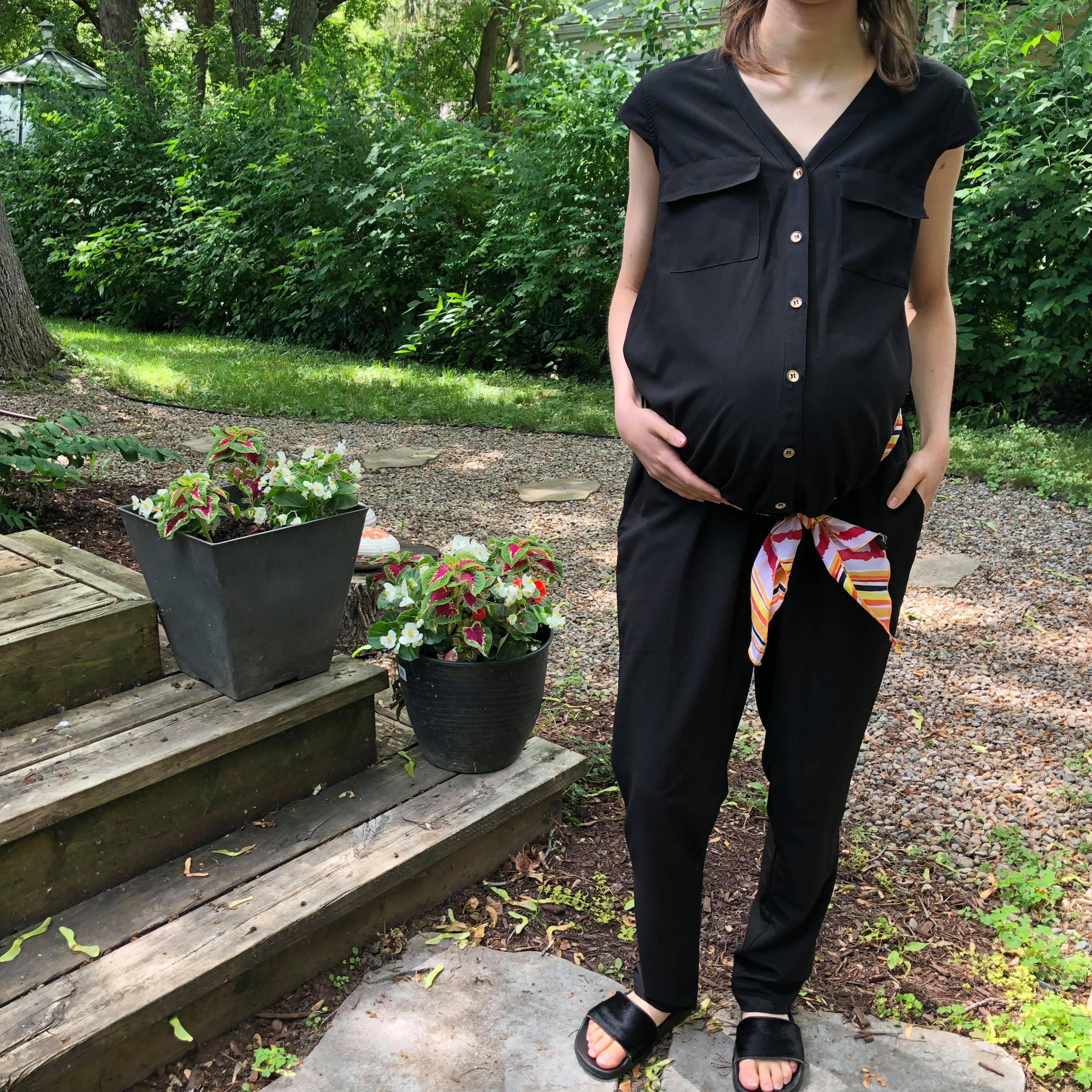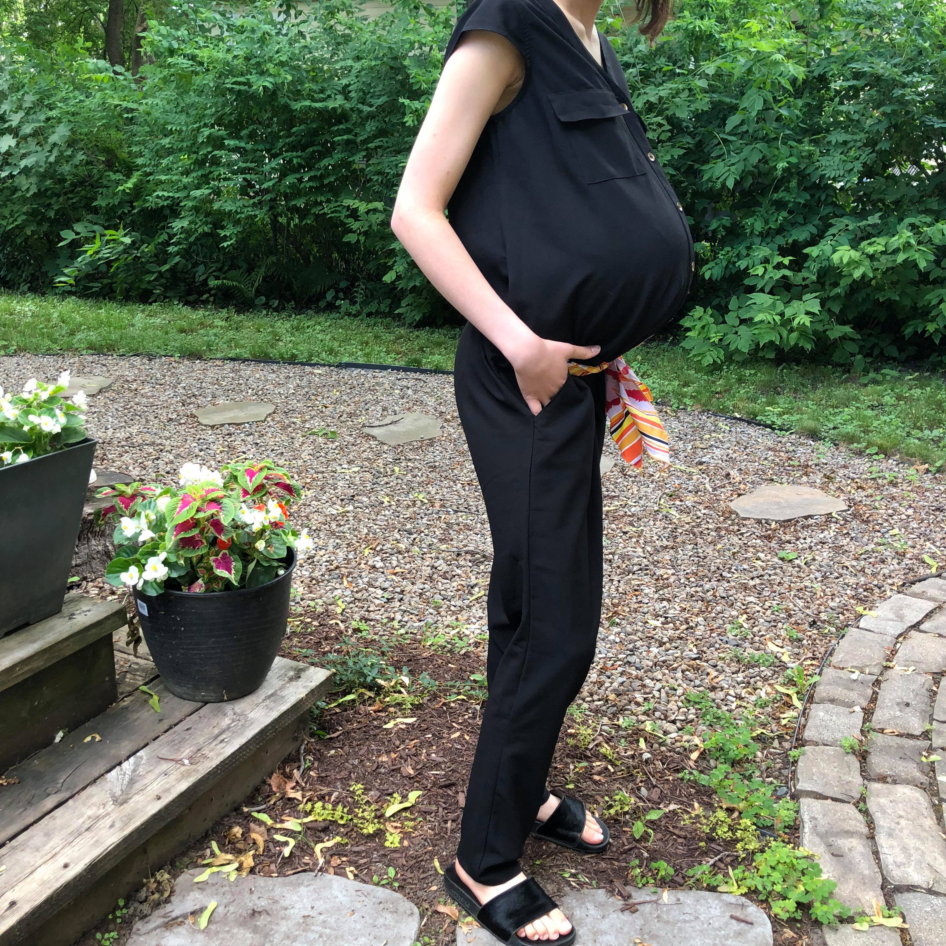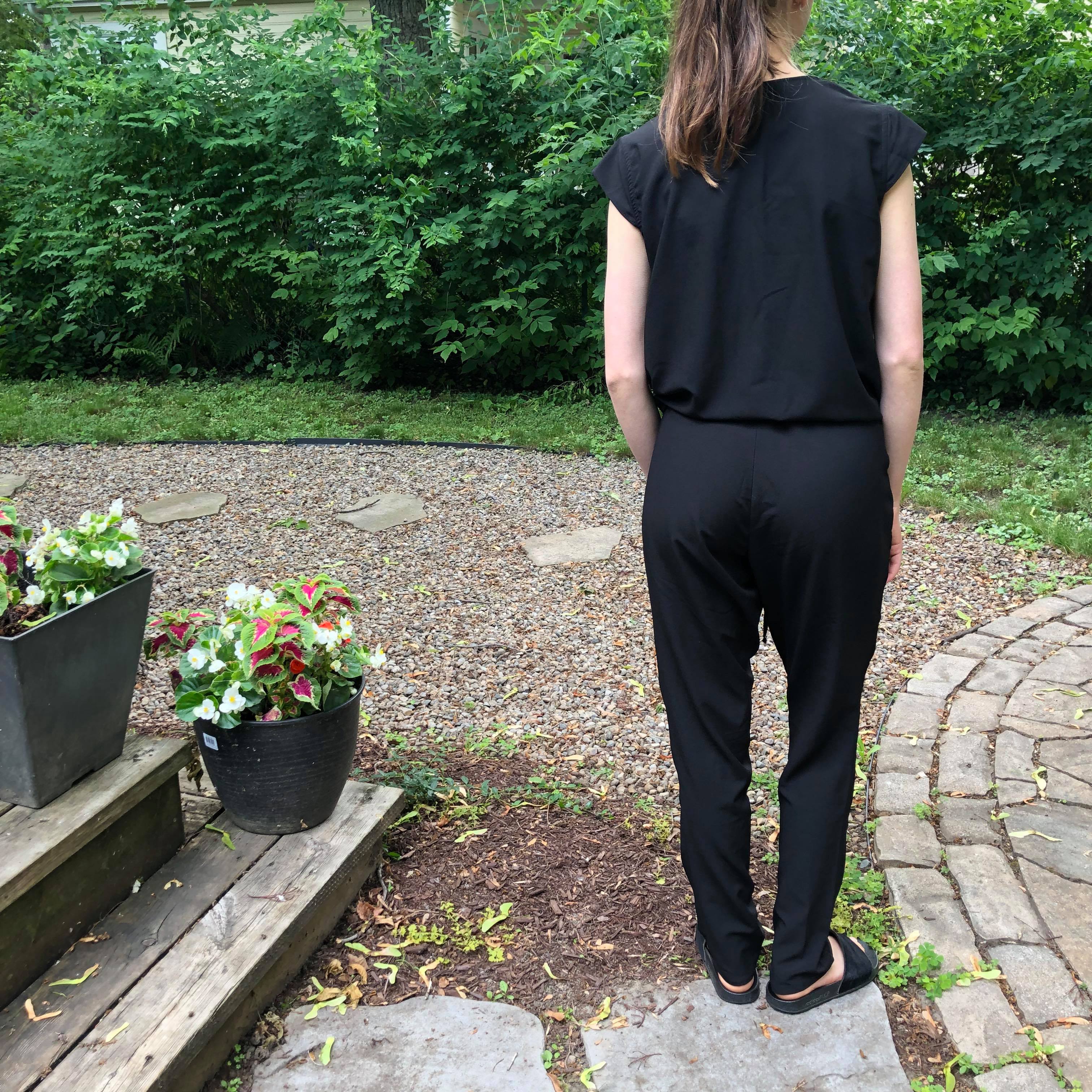 Combinaison boutonnée noir, cordon à la taille et poches. Extrêmement confortable et facile d'entretien. 100% Polyester