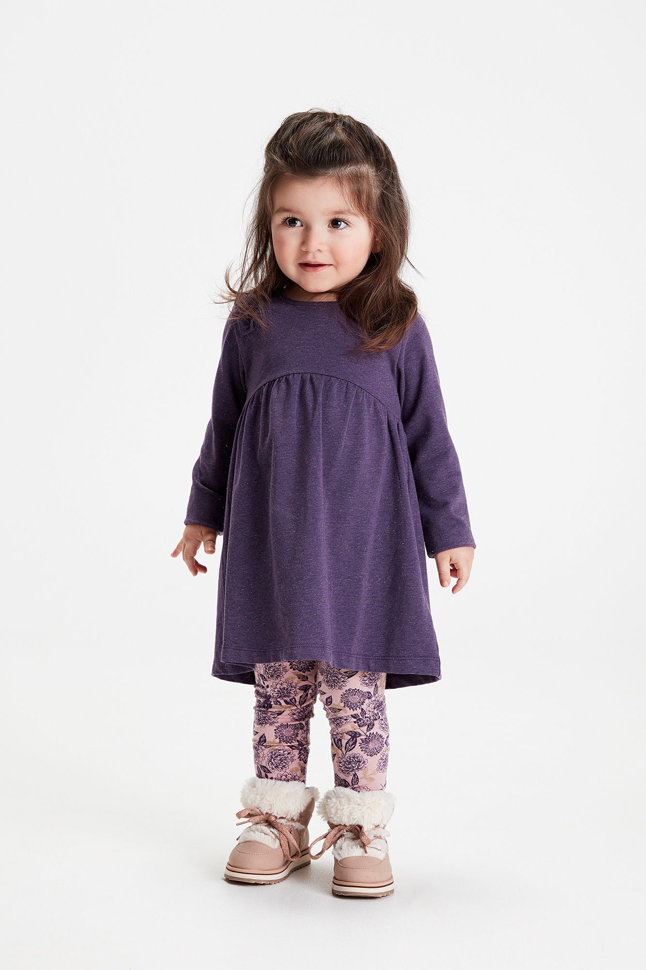 Robe jersey de coton mauve petits brillants, boutonné au dos et frill sur les épaules.