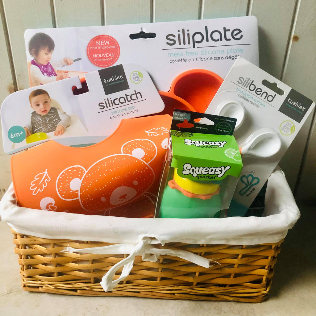 Vous ne savez pas quoi offrir pour un Shower de bébé ou l'arrivée d'un nouveau-né, laissez nous vous surprendre avec nos paniers cadeaux remplis de nos produits coup de coeur essentiels pour les premiers repas.