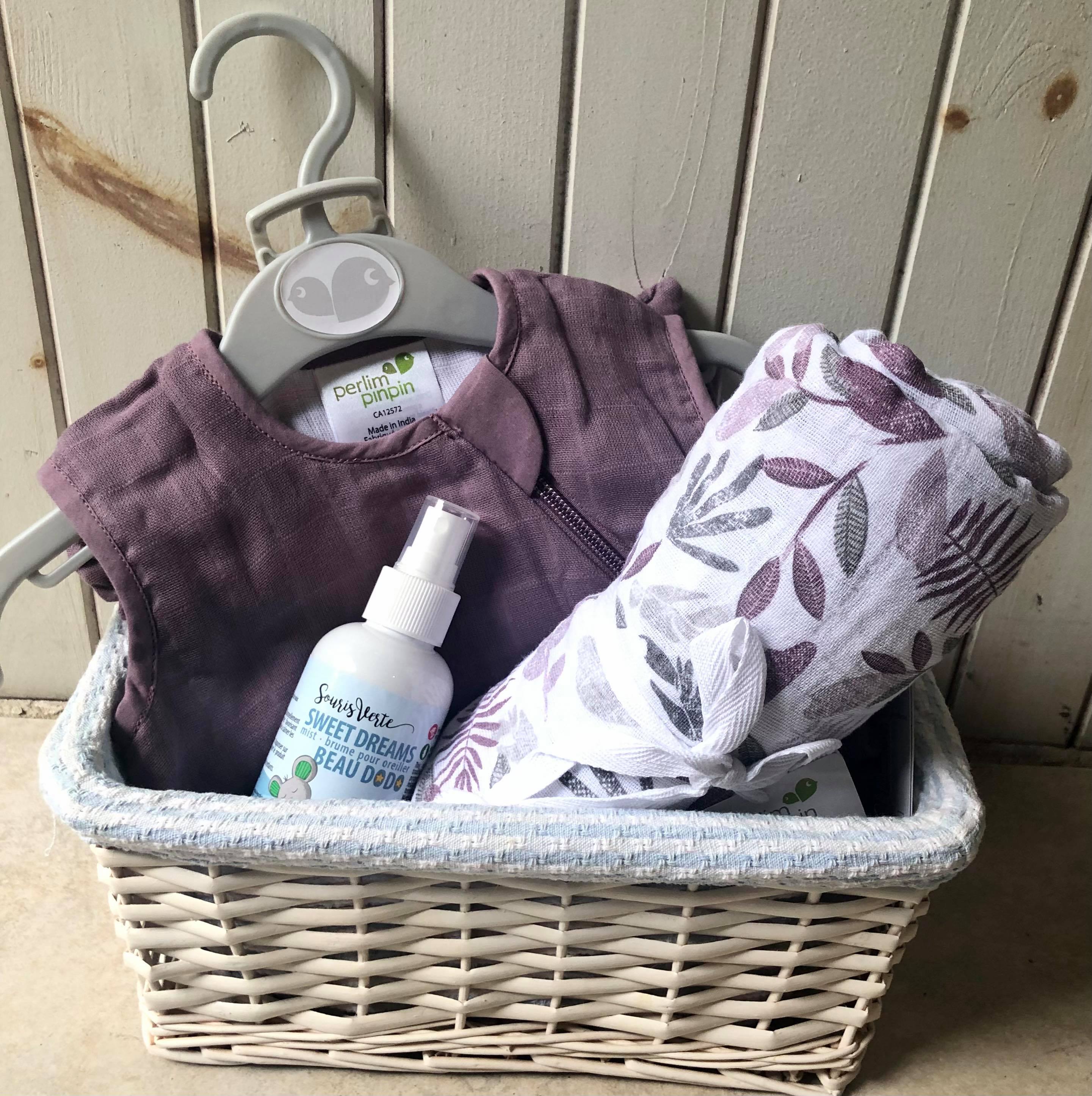Vous ne savez pas quoi offrir pour un Shower de bébé ou l'arrivée d'un nouveau-né, laissez nous vous surprendre avec nos paniers cadeaux remplis de nos produits coup de coeur essentiels pour le dodo.